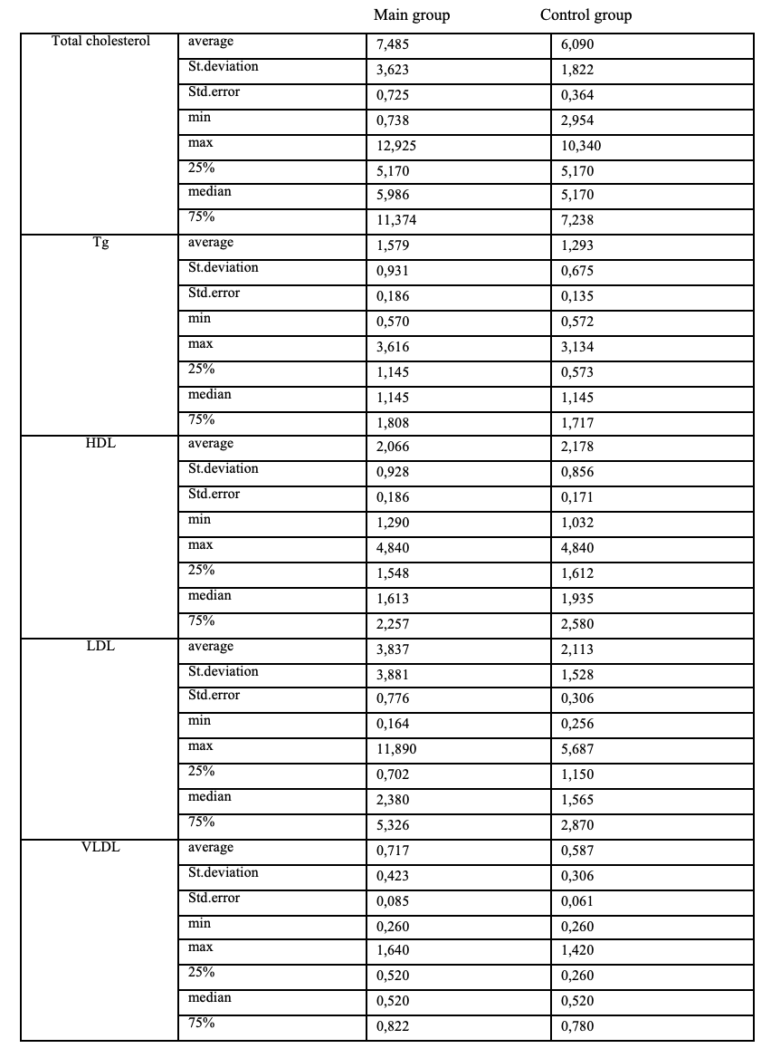 Table 1. Contents of “traditional” lipid metabolism parameters in patients (descriptive statistics)