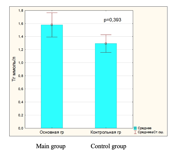 Fig.3. Triglyceride level in blood serum in main and control group.