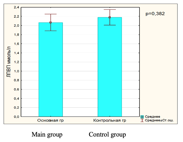 Fig.4. HDL level in blood serum in main and control group.