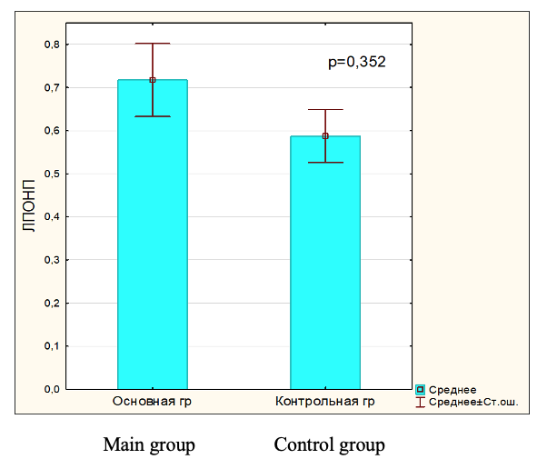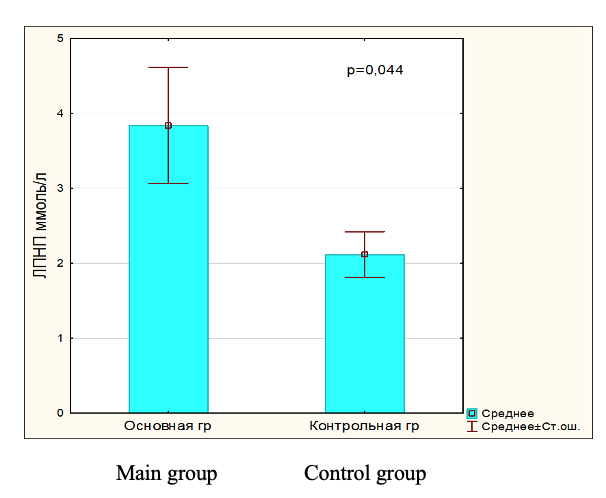 Fig.5. LDL level in blood serum in main and control group.