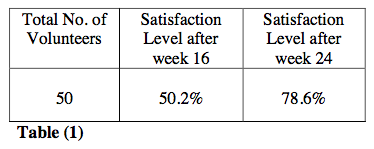 The collection of data were carried out fairly accordingly to the treatment regimen of BIOHAIR® 5% & 2% topical lotion for men and women respectively; the satisfaction level of the volunteers were graphically expressed which shows that at what extent the volunteers were satisfied with the efficacy and safety upon the completion of 24 weeks treatment regimen, table (1).