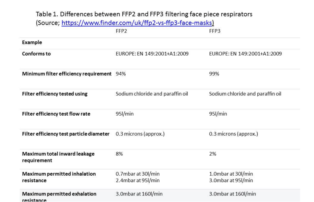 The World Health Organisation recommends that health care workers should wear a particulate respirator at least as protective as a N95/FFP2, or equivalent, when performing aerosol generating procedures on patients suspected or confirmed of being infected with COVID-19.13